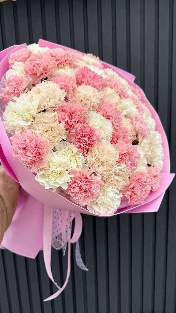 Большой букет из 65 диантусов в микс оттенков — роскошный и долгостоящий подарок.