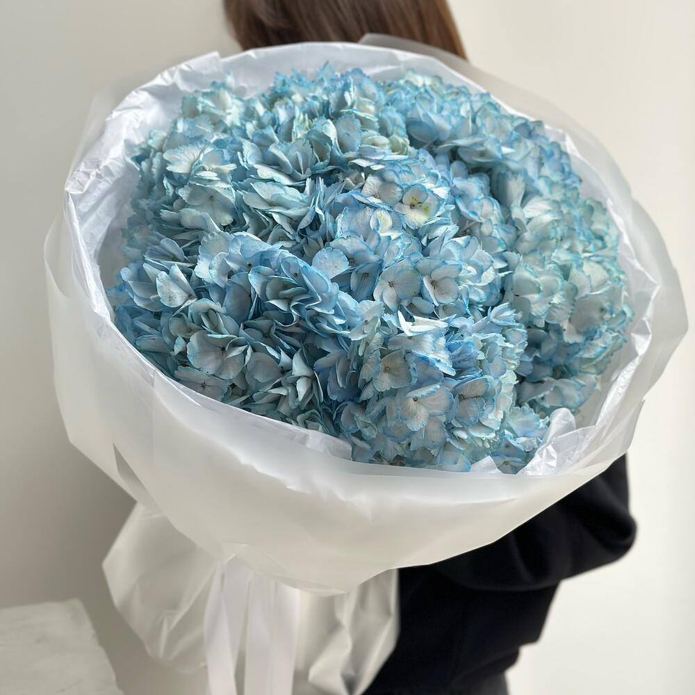 Букет голубых гортензий — необычный и нежный подарок на 8 марта.