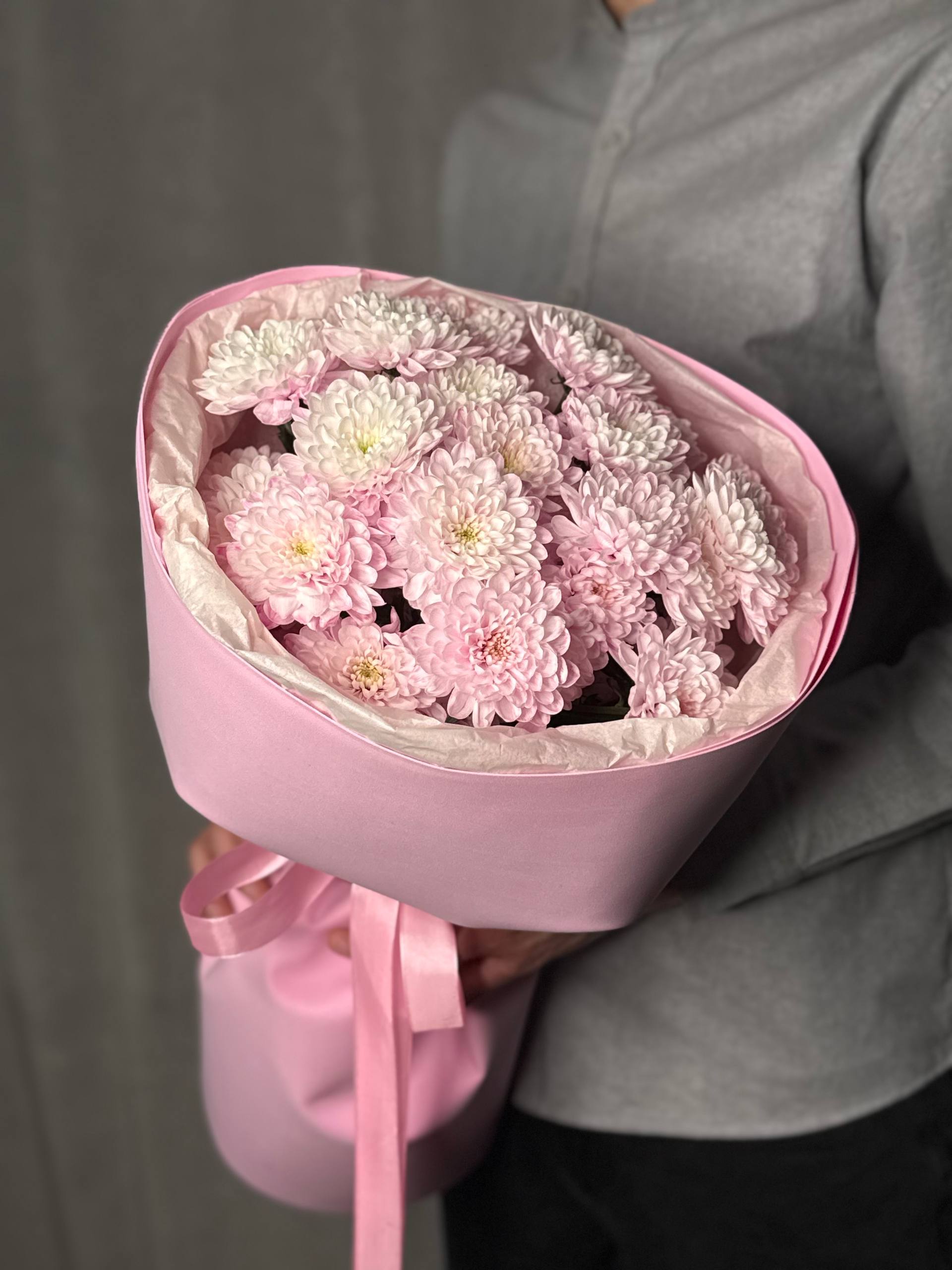Моно-букет из розовой хризантемы Алтай — нежный и стойкий подарок. Доставка свежих цветов по Ростову.